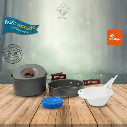 หม้อแคมป์ปิ้งชุดใหญ่ สำหรับ 2-4 คน เก็บซ้อนประกอบกันประหยัดที่เก็บ น้ำหนักเบาเมื่อเทียบกับความอเนกประสงค์ของการใช้งาน มีหม้อ กาน้ำ กระทะ ถ้วย จาน