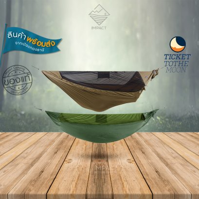 Ticket To The Moon เปลมุ้ง Pro Hammock สะดวก ครบ พร้อมใช้งาน หน้ากว้าง 170 ซม, น้ำหนัก 860–880 g, รับน้ำหนัก 150 กก.