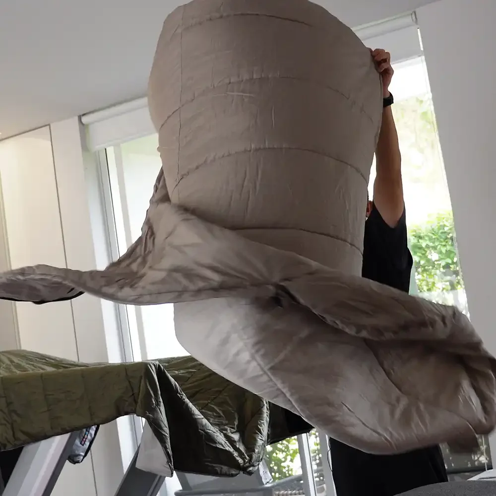 ควรเก็บถุงนอนในถุงผ้าขนาดใหญ่ ไม่ใช่ถุง Compression เพราะจะทำให้ใยฉนวนคืนรูปได้เต็มที่