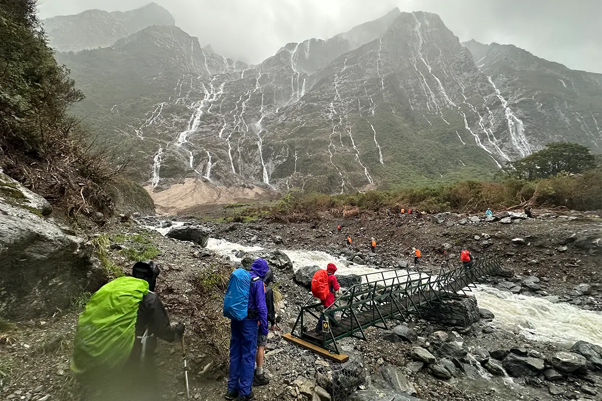 เช้าวันที่ 2 เริ่มต้นด้วยสายฝนตามพยากรณ์อากาศ แต่นี่คือจุดเริ่มต้นความสวยงามของ Milford Track เพราะเมื่อฝนตก เราจะได้เห็น "น้ำตกพันสายธาร" ไหลลงมาจากยอดฟยอร์ดที่ล้อมรอบเราอยู่ เส้นทาง 16 กิโลเมตรในวันนี้ค่อนข้างแฉะและลุยน้ำ แต่เมื่อถึงที่พักเรากลับได้พบความ Contrast ที่น่าทึ่ง เพราะที่พักมี Drying Room ที่ช่วยอบเสื้อผ้าและรองเท้าให้แห้งสนิท พร้อมอาหารค่ำสุดหรูที่ทำให้ลืมความเหนื่อยล้าไปหมดเลย