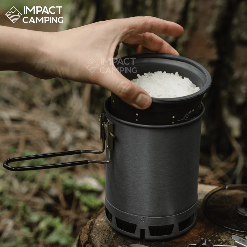 หม้อเสริมขนาดเล็กพิเศษน้ำหนักเบา 58 กรัม ใบนี้หุงข้าวสวย นึ่งไข่ หรืออุ่นซุปได้ ขนาดกะทัดรัดใส่ถังแก๊สขนาด 110 กรัมได้ ออกแบบมาสำหรับหม้อ Petrel G3