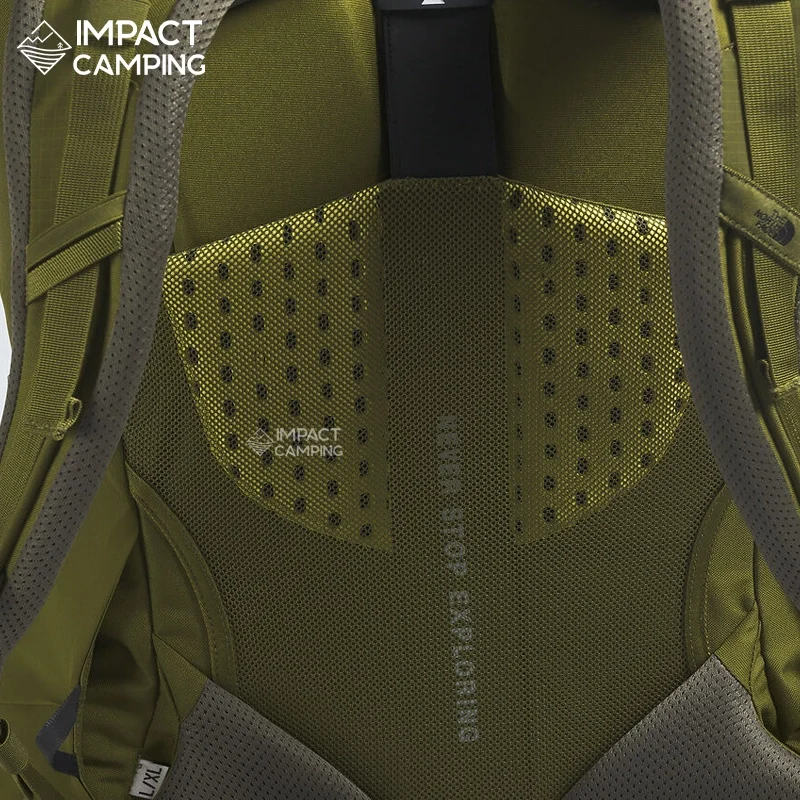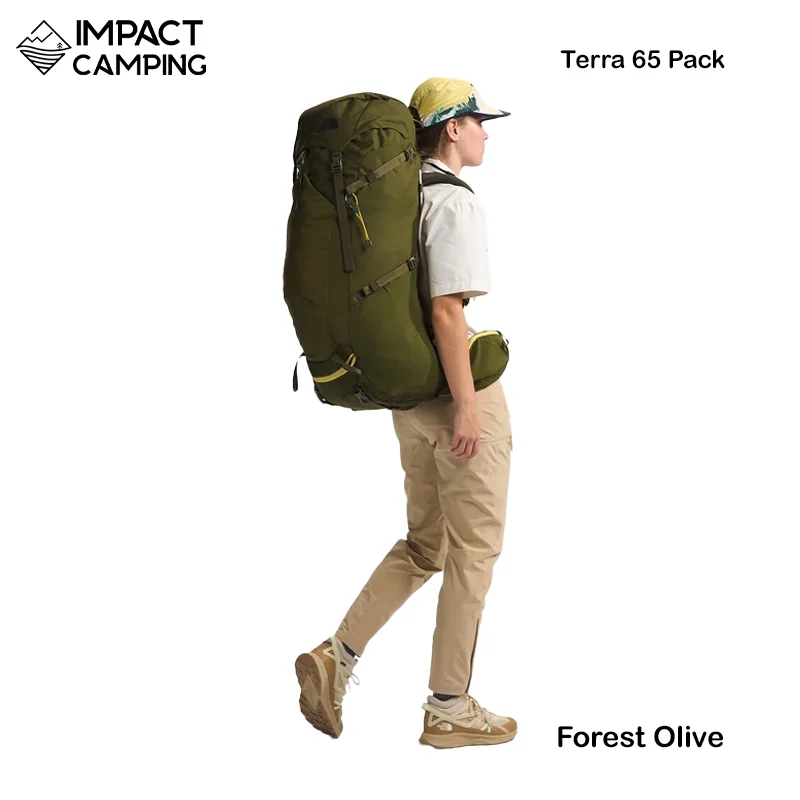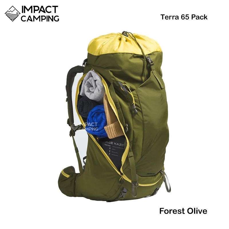 The North Face Terra 65 เป็นเป้เดินป่าขนาดใหญ่ที่ออกแบบมาสำหรับทริปหลายวัน มาพร้อมระบบสะพาย OPTIFIT และ Dyno Lift ที่ช่วยกระจายน้ำหนักให้สบายขึ้นแม้บรรทุกหนัก พร้อมโครงภายในและช่องเปิดแบบ J-zip ทำให้หยิบของง่าย ทนทาน และรองรับถุงน้ำสำหรับเดินระยะไกล