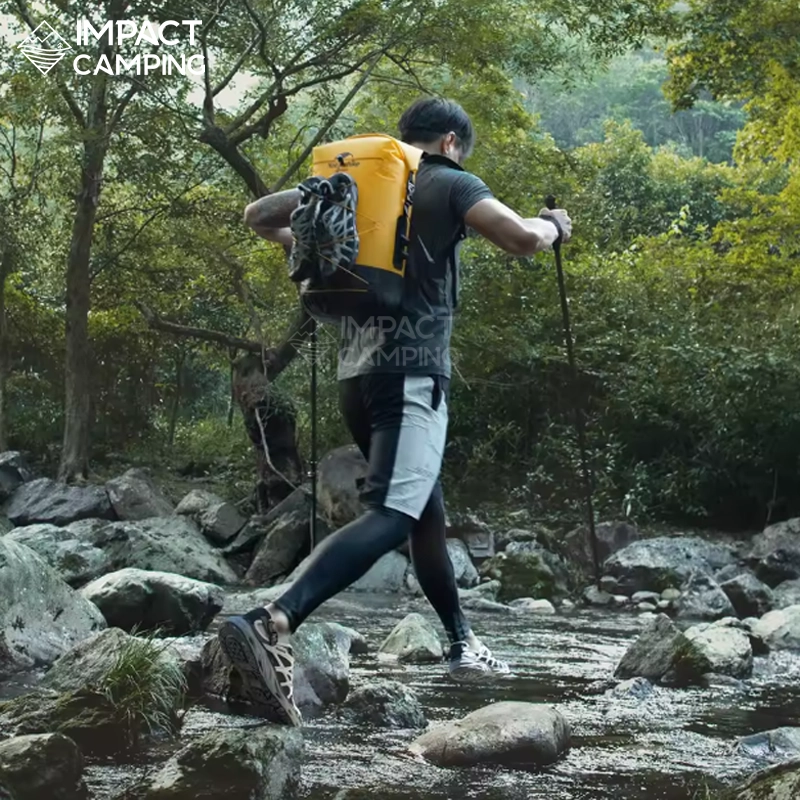 กระเป๋ากันน้ําแบบแยกช่องของเปียกและแห้ง เหมาะสำหรับเดินทางและกิจกรรมกลางแจ้ง เช่น ล่องแก่ง พายเรือ เดินป่า หรือเที่ยวชายหาด ผลิตจาก วัสดุไนลอน 420D 84T เคลือบด้วย TPU ซึ่งมีความทนทานและกันน้ําได้ดี