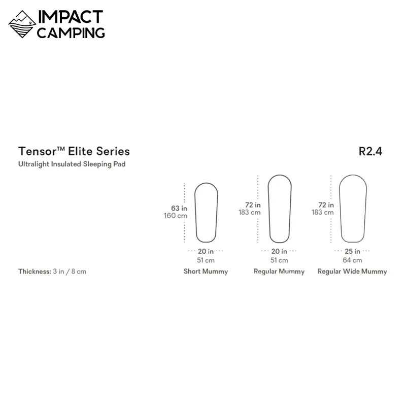 Tensor™ Elite เป็นแผ่นรองนอนของ NEMO ที่เบาที่สุดเท่าที่เคยมีมาสำหรับนักเดินป่าที่ต้องการความคล่องตัวสูง แผ่นรองนอนรุ่น 2.4 R-value มีจำหน่ายเฉพาะรุ่นมัมมี่ที่น้ำหนักเบาเป็นพิเศษ มีน้ำหนักเพียง 240 กรัม